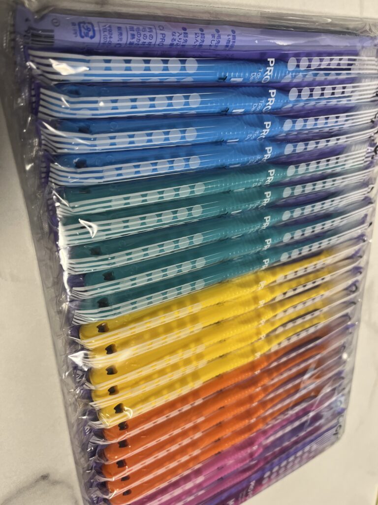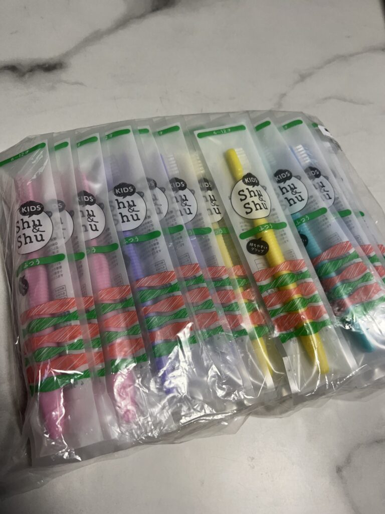 子供用歯ブラシだけでも、ドラッグストアで1本100円で買ってたら25本で2,500円のところが、ネットで25本1072円!!しかも送料無料。